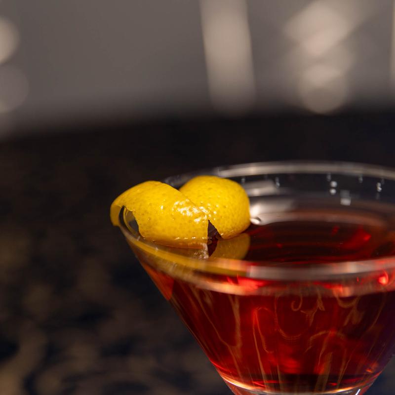 A bold Italian aperitif made with gin, Campari, and sweet vermouth. Stirred and garnished with an orange twist.