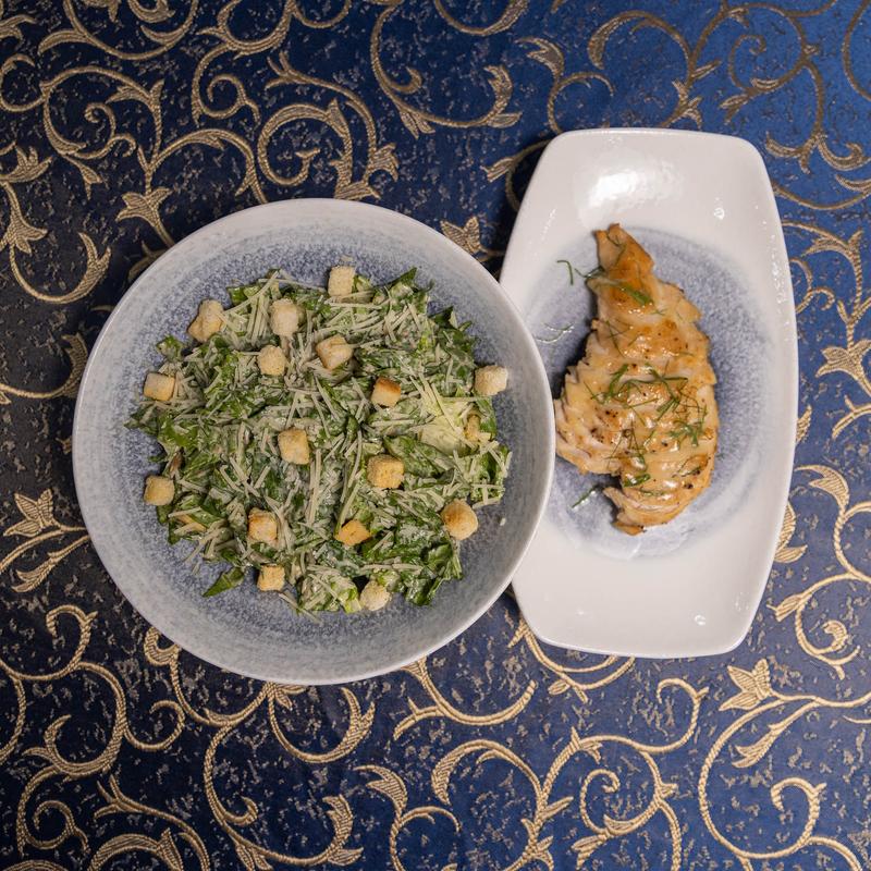 Romaine hearts, croutons, parmesan cheese • Enhancements: Chicken $8.00 | Shrimp (5 pcs) $10.00 • Nut Free