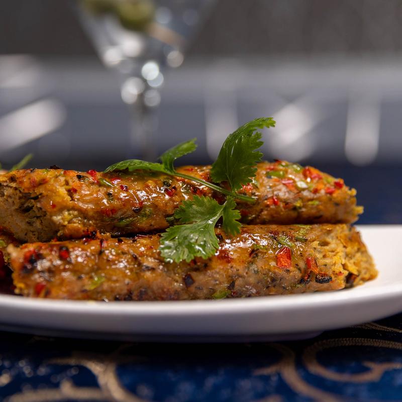 Minced chicken mixed with onion, bell peppers and aromatic spices • Contains Nuts