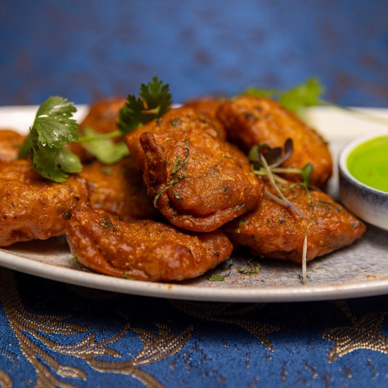 Fresh seasonal vegetables fritters served with tamarind mint • Nut Free