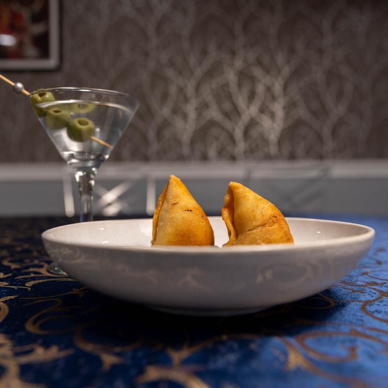 Deep fried triangular shaped puff pastry filled with spiced potato filling.