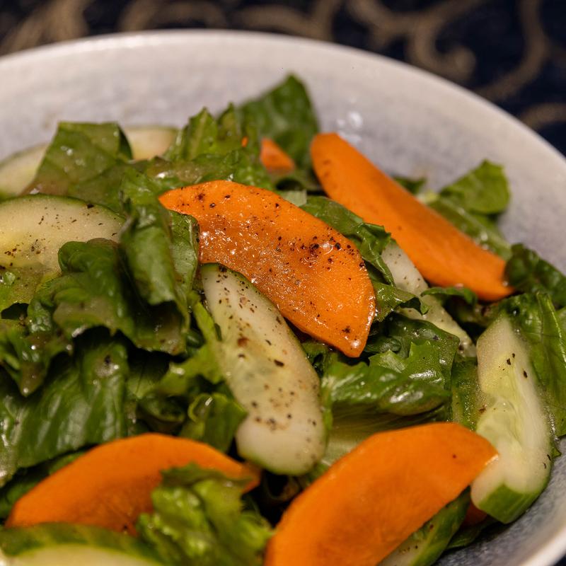Artisan lettuce, cucumber, carrots, dressed with red wine vinaigrette • Enhancements: Chicken $8.00 | Shrimp (5 pcs) $10.00 • Nut Free
