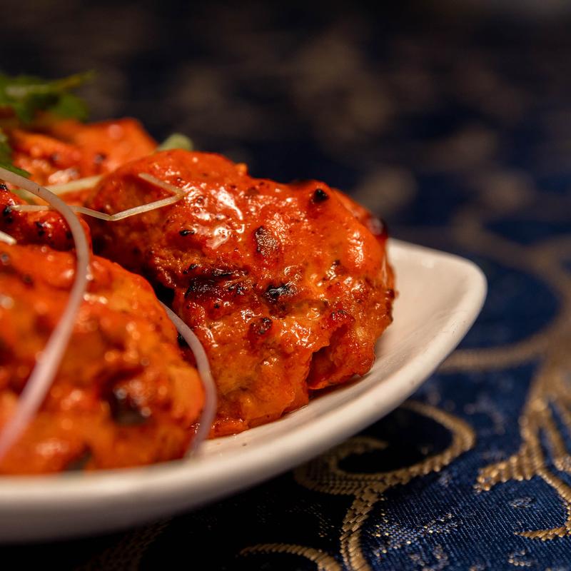 Chicken cubes marinated with tandoori spices cooked to perfection • Nut Free